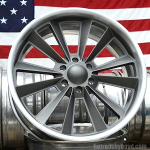 Our 6 Lug perfected with Cerakote charcoal center and brushed lip.